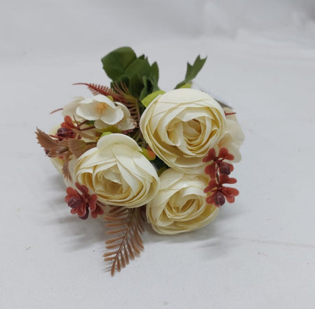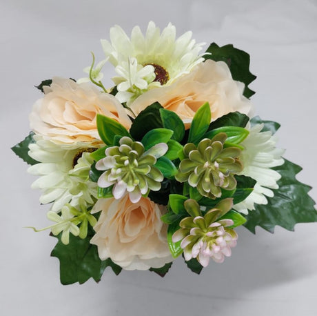 Buchet trandafiri cu gerbera x9 H:33cm crem