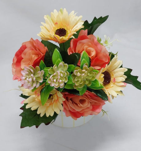 Buchet trandafir cu gerbera x9 H:33cm piersica