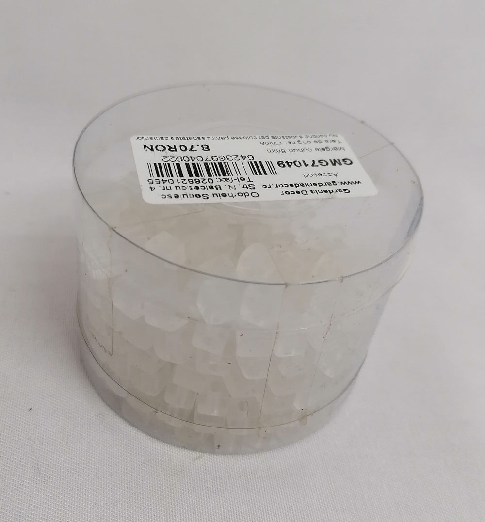 Aceste margele cuburi de 6mm sunt o alegere perfectă pentru a adăuga un aspect elegant și sofisticat aranjamentelor tale florale sau decorurilor de nuntă. Cu o greutate de 100 grame pe cutie, aceste margele sunt ușor de manevrat și pot fi utilizate în diverse moduri creative.