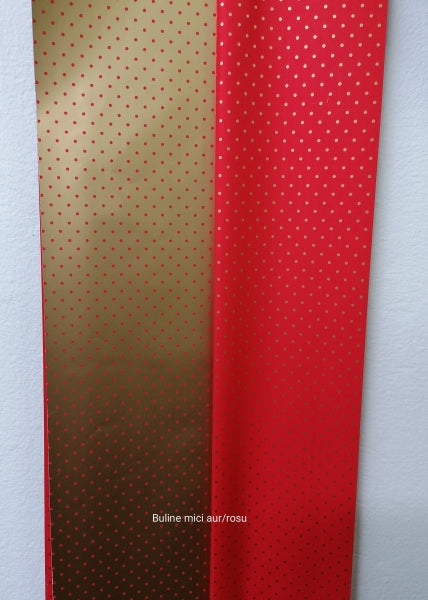 Această folie decorativă cu buline mici în culorile aur și roșu este perfectă pentru a aduce un plus de eleganță și strălucire proiectelor tale creative. Fie că dorești să împachetezi cadouri speciale sau să creezi decorațiuni unice, aceste coli de folie de dimensiuni generoase, 1m x 70cm fiecare, sunt alegerea ideală pentru tine.
