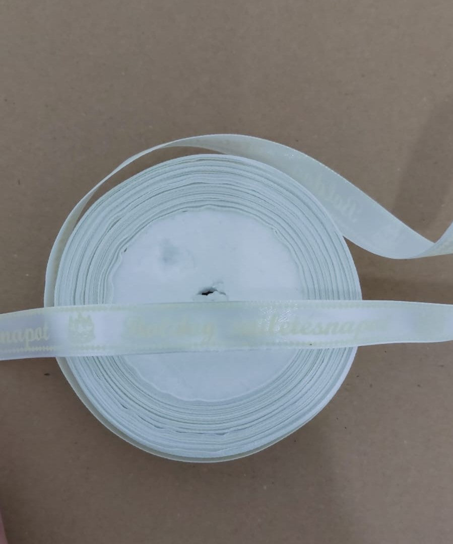 Banda decor saten 1.5cmx25y Boldog Szuletesnapot alb