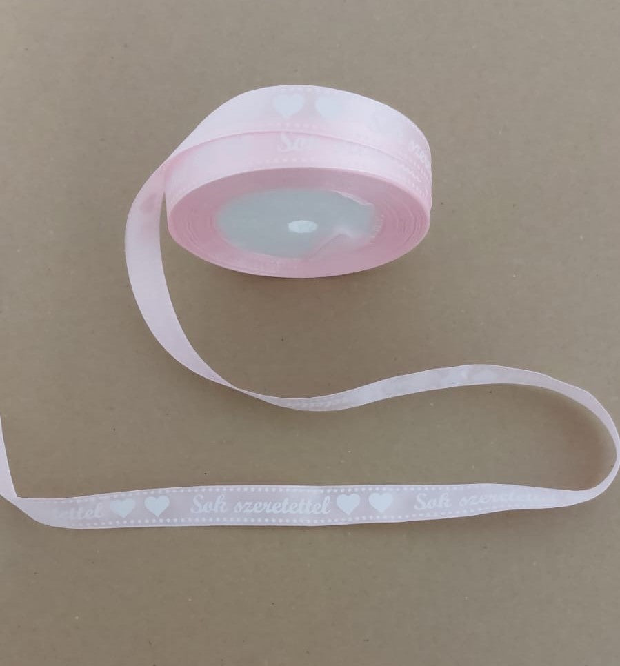 Banda decor saten 1.5cmx25y Sok Szeretettel roz