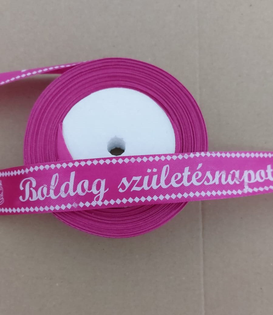 Banda decor saten 2.5cmx25y Boldog Szuletesnapot ciclam