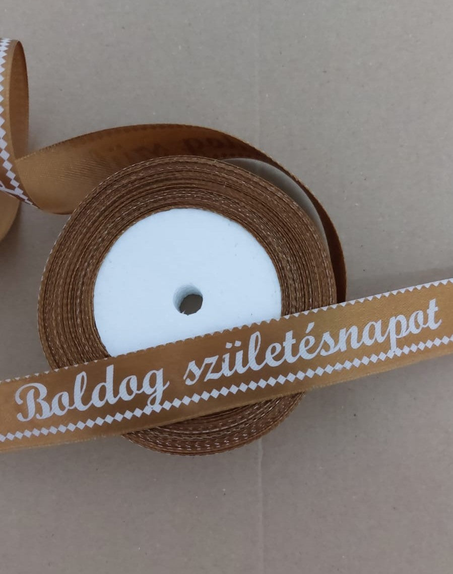 Banda decor saten 2.5cmx25y Boldog Szuletesnapot maro
