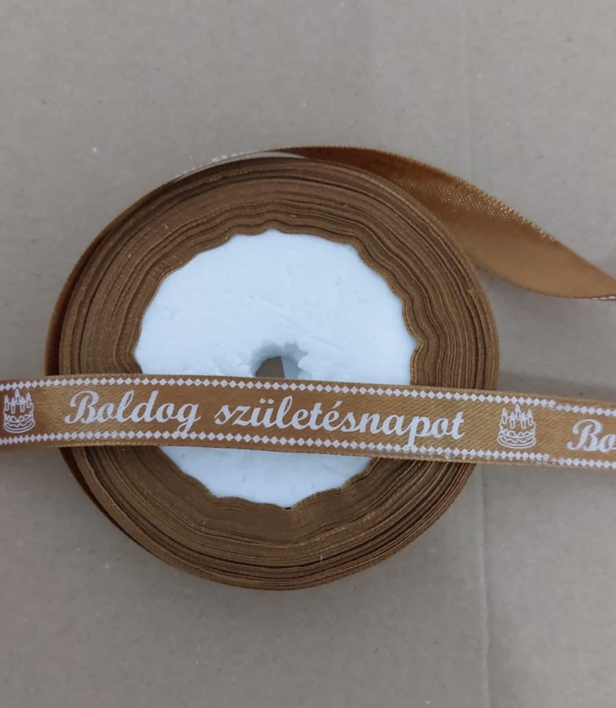 Banda decor saten 1.5cmx25y Boldog Szuletesnapot maro