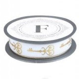 Banda decor textil cu model chei 2.5cmx10m alb/auriu