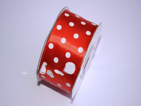 Banda decor saten cu buline 3.8cmx25y portocaliu/alb