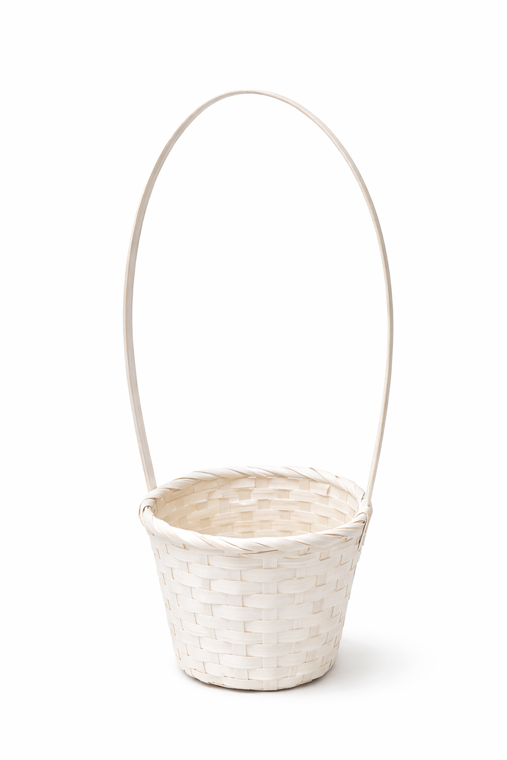 Confecționat din bambus împletit, coșul se remarcă prin rezistență și aspect natural, completat de finisajul alb care îi oferă un aer rafinat și luminos. Dimensiunea ușor mai generoasă a bazei permite realizarea unor aranjamente bogate, iar toarta înaltă (45 cm) adaugă eleganță și facilitează transportul sau expunerea.