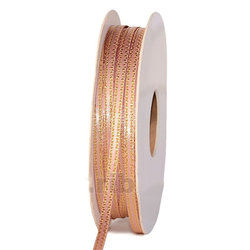 Banda decor saten cu margine auriu 3mmx10m roz pudra