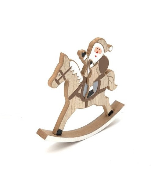 Această minunată piesă decorativă de Crăciun, un cal balansoar din lemn, aduce un aer rustic și cald în orice încăpere. Cu dimensiunile sale elegante de L:24.8cm, D:2.5cm, I:23cm, acest balansoar aduce un farmec aparte oricărui colț al casei tale.