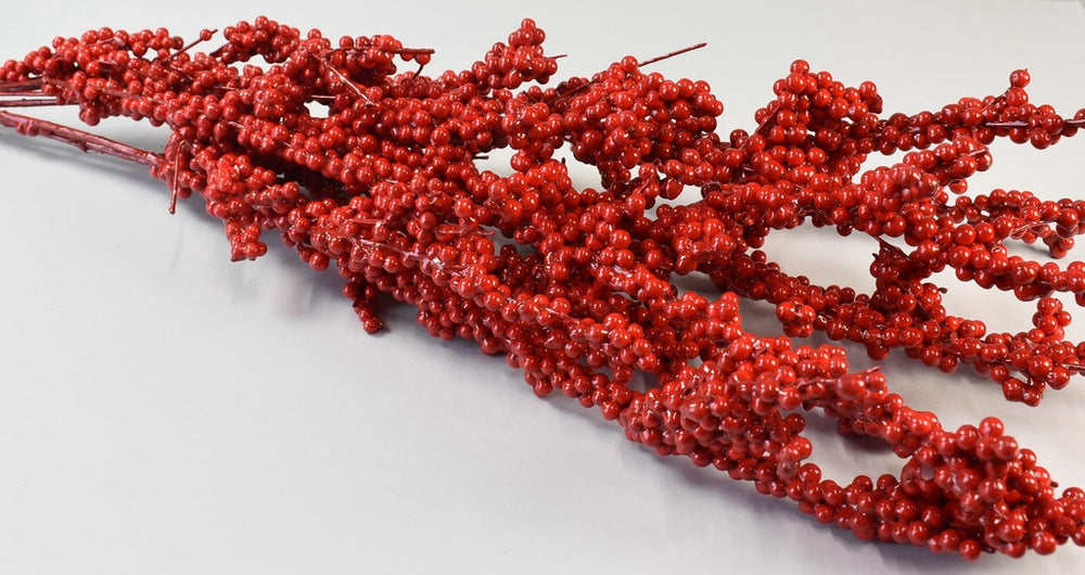 Această creangă Ilex de 80cm în nuanțe de roșu este un element decorativ deosebit ce aduce o notă vibrantă în orice aranjament floral. Cu 8 fire pe legătură, această creangă se remarcă prin frumusețea sa naturală și aspectul autentic.