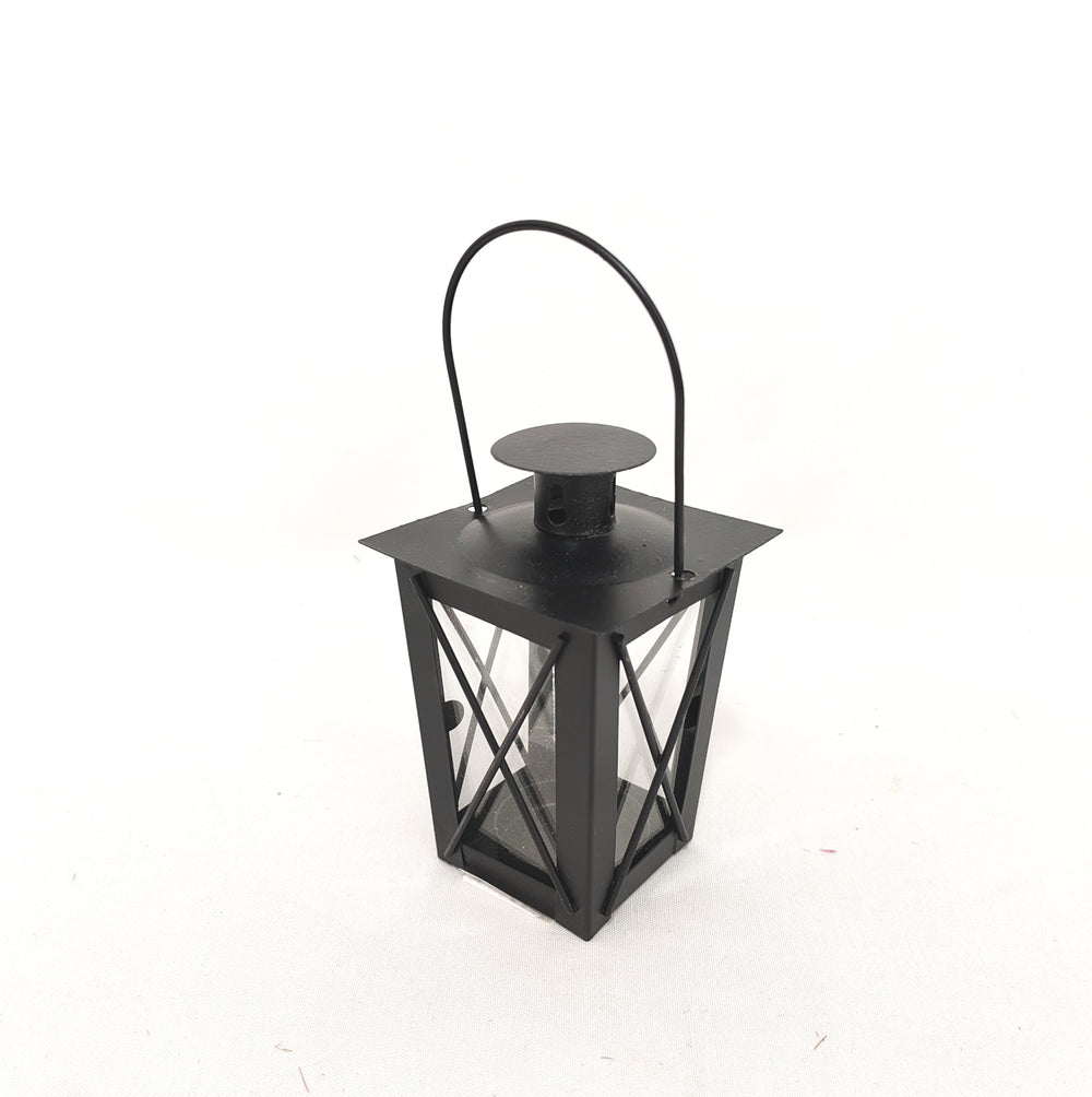 Felinar din metal/sticla 7x12cm negru