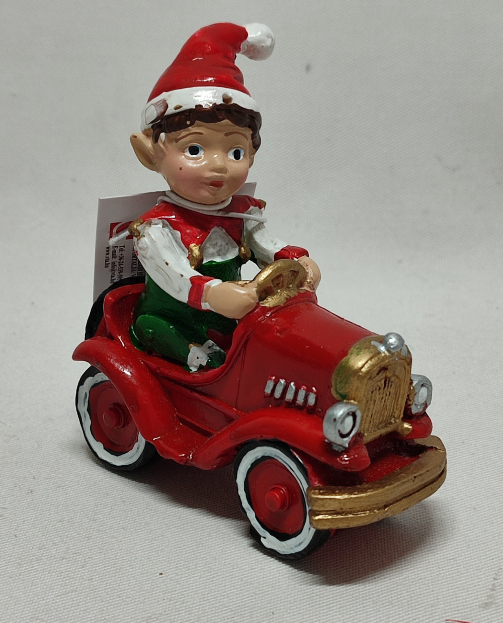 Această minunată figurină reprezintă un spiriduș vesel aflat la volanul unei mașinuțe, aducând un strop de magie și bucurie în decorul casei tale. Cu dimensiunile sale de 7.9X3.4X8.7cm, este perfectă pentru a fi amplasată în diverse colțuri ale locuinței tale sau pentru a completa aranjamentele florale.