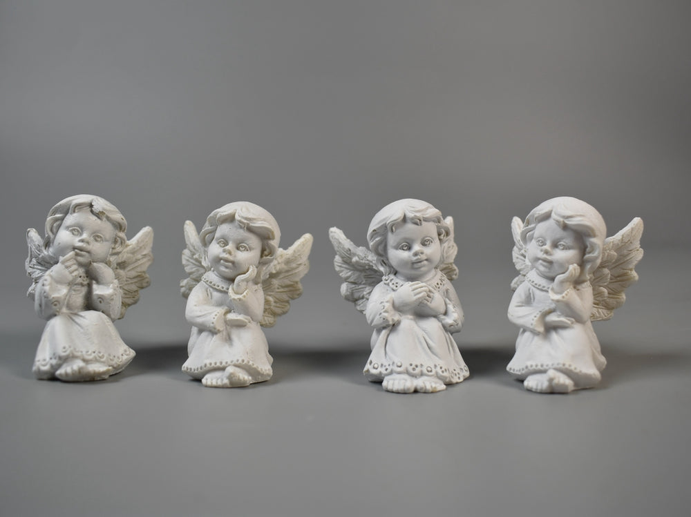 Aceste 4 figurine delicate de îngerași sunt perfecte pentru a aduce o notă de eleganță și frumusețe în decorul tău de Crăciun sau în aranjamentele funerare speciale. Fie că îți dorești să aduci un strop de magie în timpul sărbătorilor sau să omagiezi cu respect o persoană dragă, acest set este alegerea ideală.