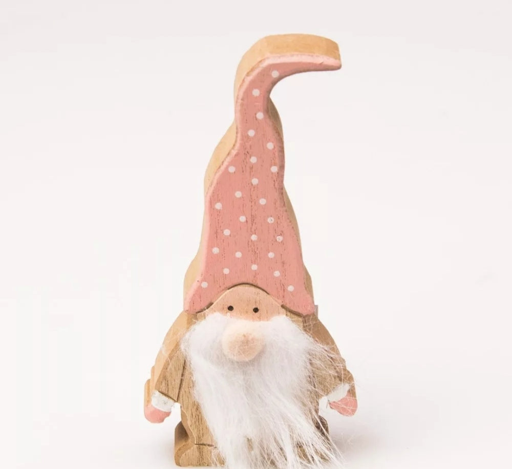 Această figurină adorabilă de Spiridus din lemn, cu dimensiunea de 7x2x15cm, va aduce un strop de magie în decorul tău. Culorea roz delicată aduce o notă de căldură și bucurie, perfectă pentru a completa atmosfera de Crăciun sau de toamnă.