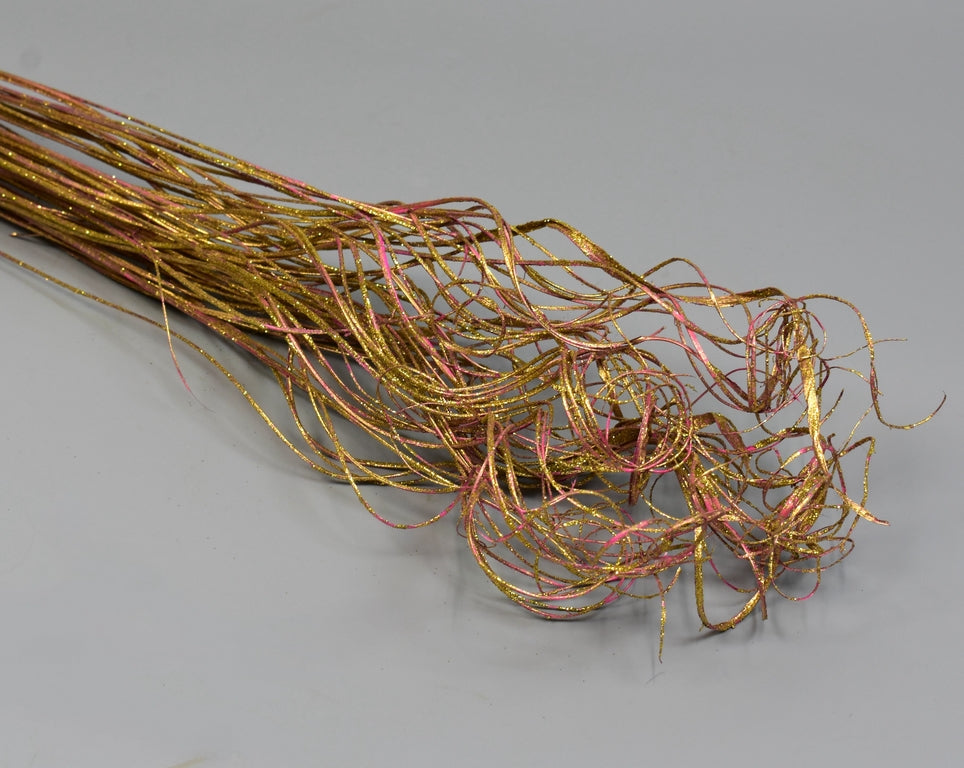 Aceste tije decorative Curly Ting Ting auriu&glitter aduc strălucire și eleganță aranjamentelor tale. Cu o greutate de 0.10kg pe buchet, aceste elemente sunt perfecte pentru a adăuga un plus de farmec și originalitate în decorul tău. Fie că le folosești pentru a crea aranjamente de Crăciun spectaculoase sau pentru a completa buchetele tale de plante uscate, aceste tije vor aduce strălucire și un aer festiv oricărui spațiu.