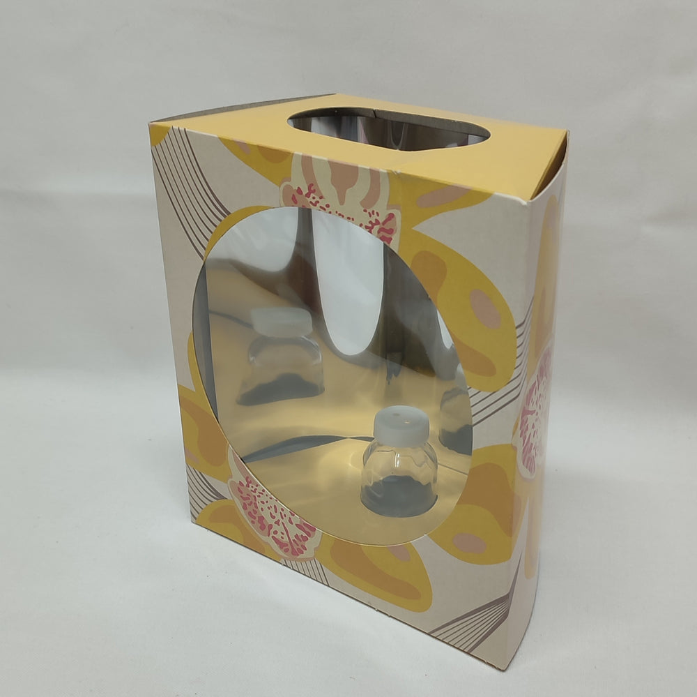 Apreciază frumusețea pură a naturii cu această minunată Cutie pentru orhidee galbenă. Cu o lățime de 8cm și dimensiunile de 17.5X16cm, această cutie elegantă este alegerea perfectă pentru a oferi un cadou deosebit sau pentru a-ți decora propria locuință.