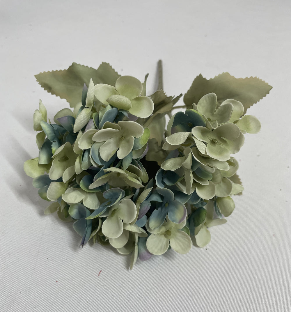 Buchet decorativ cu hortensii artificiale turcoaz, ideal pentru aranjamente florale elegante și romantice. Florile au un aspect bogat și realist, fiind potrivite pentru decoruri de masă, aranjamente pentru evenimente, vitrine sau decor interior. Dimensiunea compactă îl face ușor de integrat în diverse compoziții florale, oferind un plus de culoare și rafinament.