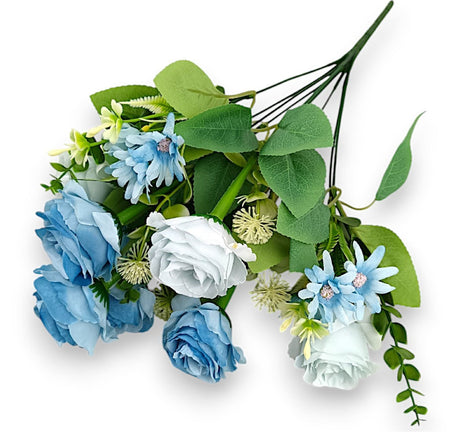 Buchet trandafiri cu eucalypt h:41cm albastru