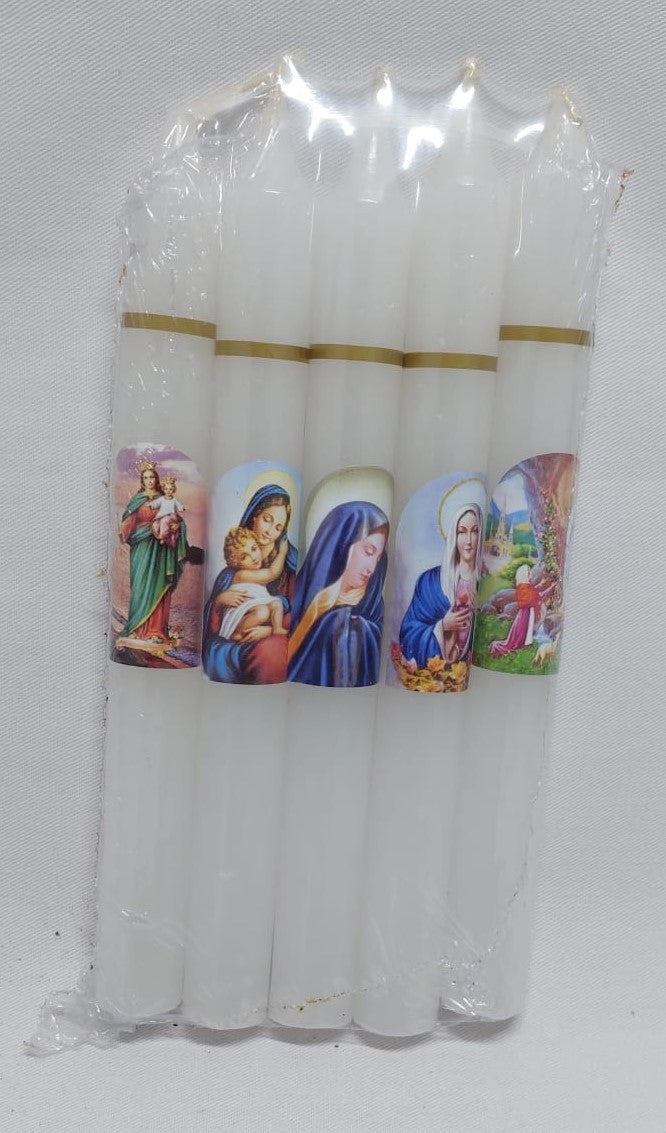 Lumânări cu poze Sfânta Maria și Isus – mărime medie 2x20 cm – 5 bucăți/pachet