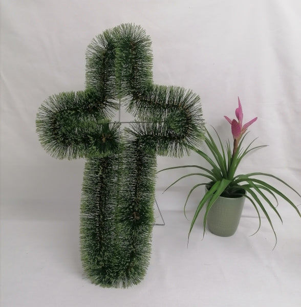 Aduceți un omagiu deosebit cu acest Pin cruce pe suport, o piesă memorabilă cu dimensiuni de 70 x 40 cm. Obiectul perfect pentru a exprima respectul și compasiunea în momente de durere.