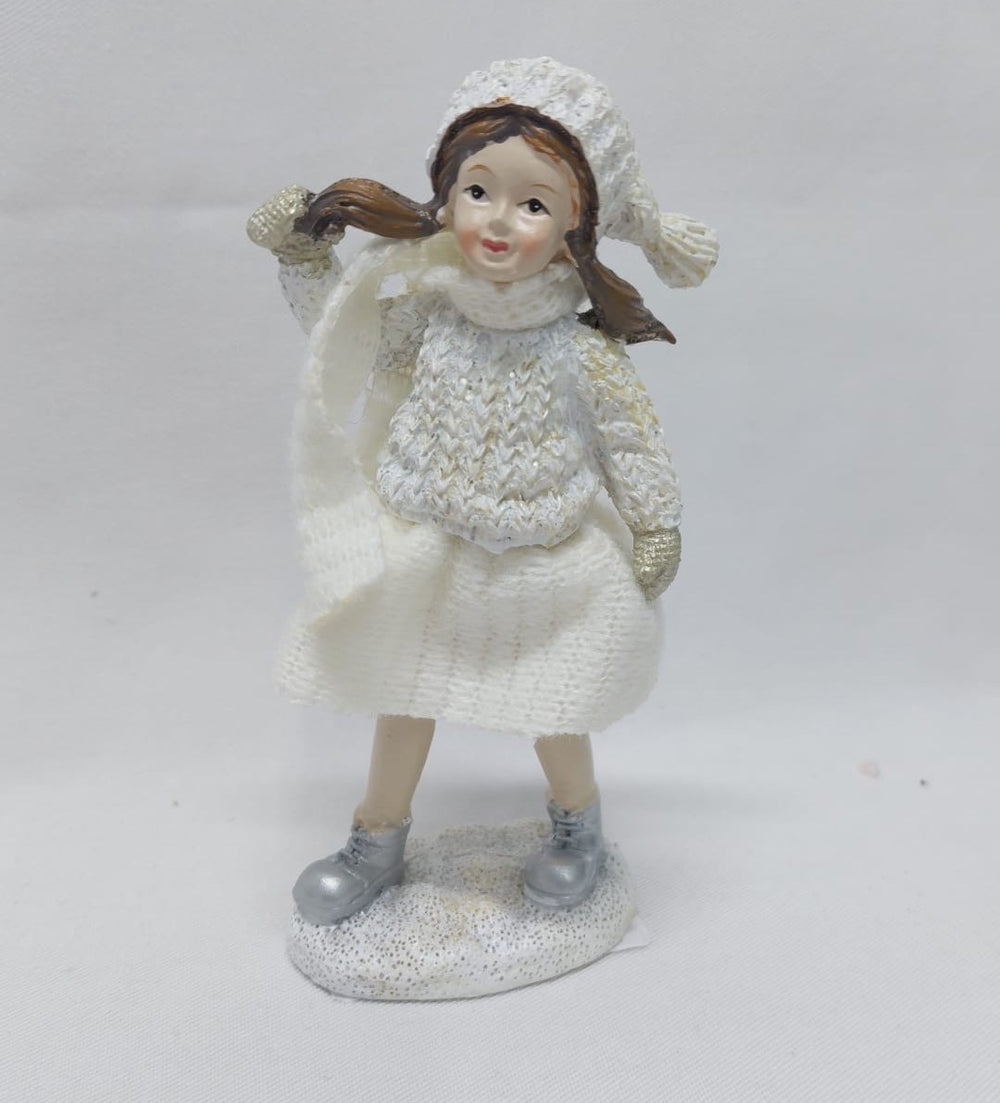 Oferă o notă delicată și rafinată decorațiunilor tale cu această figurină adorabilă de fetiță din polirezină, cu înălțimea de 13cm. Cu detalii fine și elegante, acest obiect decorativ aduce un plus de farmec oricărui spațiu în care este plasat.