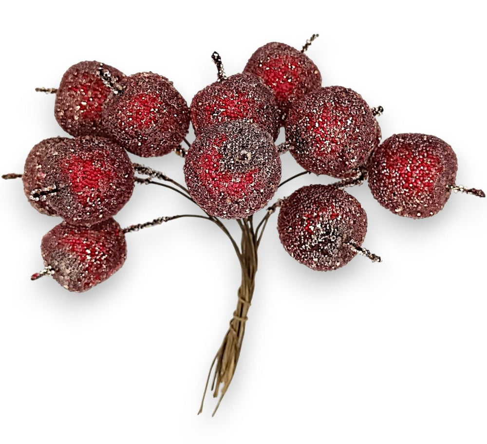 Adaugă un accent festiv și strălucitor aranjamentelor tale de iarnă cu acest pick decorativ cu mere roșii acoperite cu efect de gheață artificială. Setul include 12 fire, fiecare cu detalii realiste, ideale pentru aranjamente florale, coroane, vaze sau decorarea bradului.