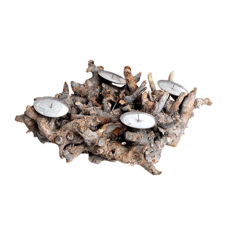 Suport Lumanare Din Bucati De Lemn 33x33x12cm