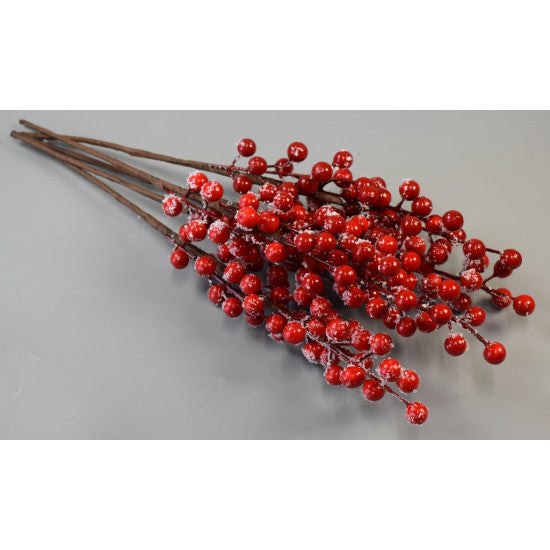 Creanga cu bilute rosu inzapezit 44cm 5buc/pachet