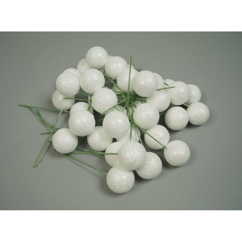 Aceste biluțe de 2.5cm în alb strălucitor cu glitter sunt accesorii perfecte pentru decorarea aranjamentelor tale de Crăciun. Fie că le folosești pentru a decora bradul, pentru a crea ornamente sau pentru alte proiecte creative, aceste biluțe adaugă un strop de eleganță și strălucire oricărui decor festiv.