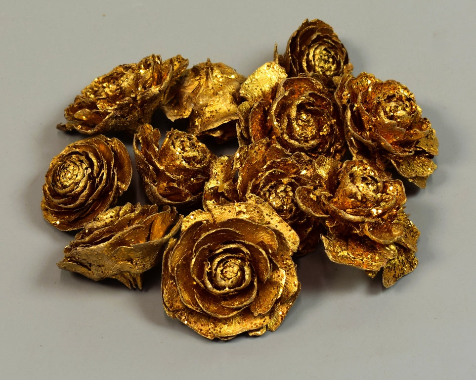 Cap trandafiri cedru 3-5cm auriu cu glitter
