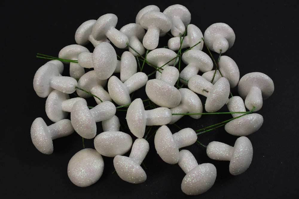 Ciuperca 4cm alb/glitter 28buc/pachet
