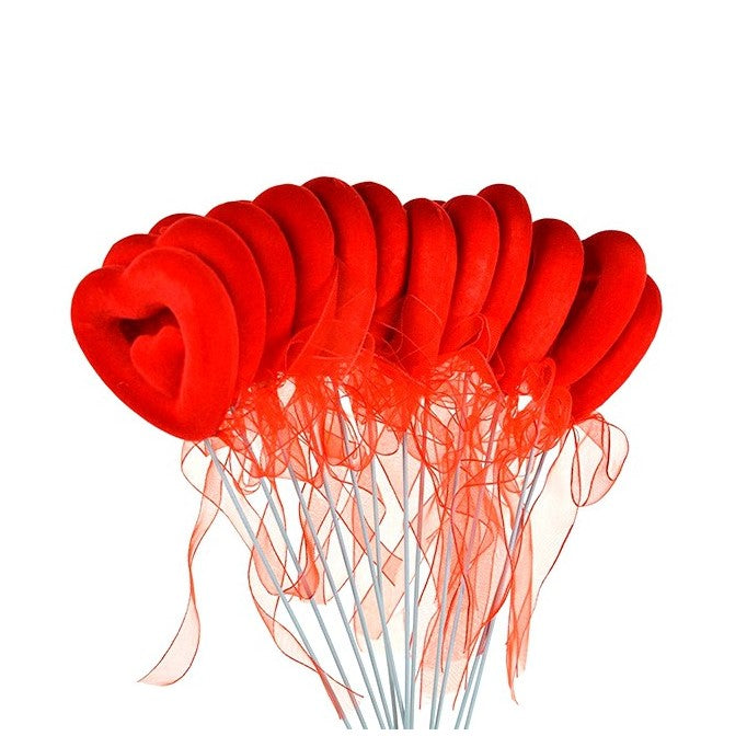 Aceste 12 picks în formă de inimă din catifea sunt accesoriul perfect pentru evenimentele speciale sau decorarea casei tale. Cu o dimensiune de 5xH18cm, aceste accesorii adaugă un farmec aparte aranjamentelor florale sau aranjamentelor de masă.