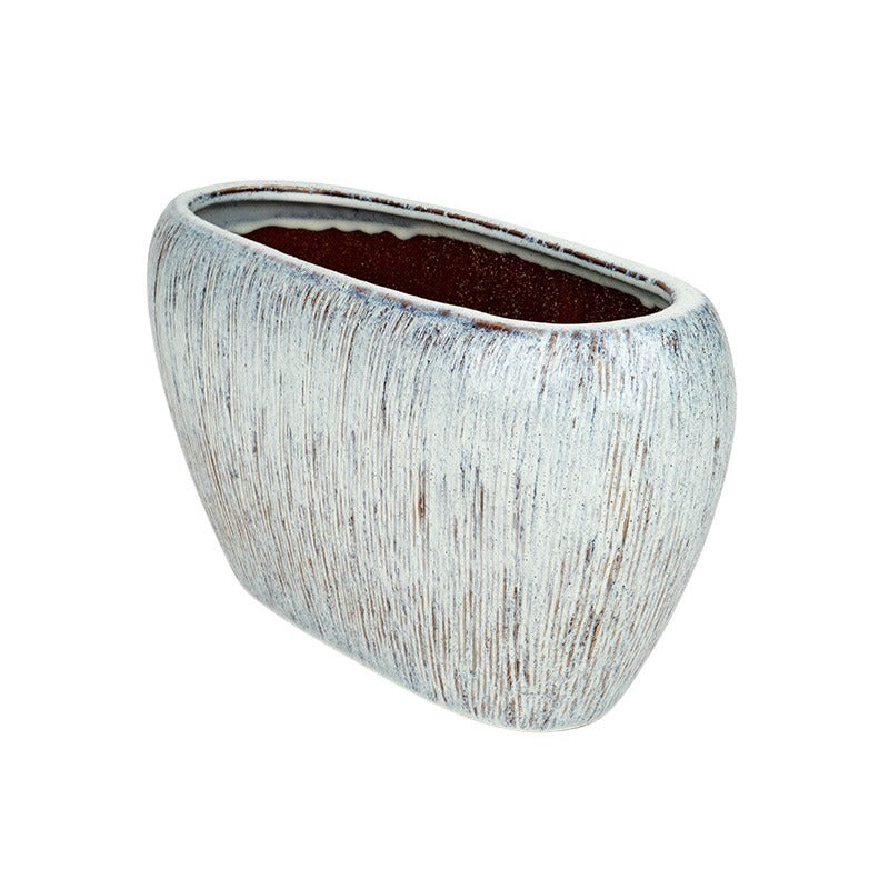 Acest minunat bol ceramic Poole, cu dimensiunile de 37,5x17x21,5cm, aduce un strop de eleganță și rafinament în decorul casei tale. Cu o lungime de 35cm și un diametru interior de 11cm, acest bol este perfect pentru a fi folosit atât ca element decorativ, cât și pentru aranjamente florale spectaculoase.