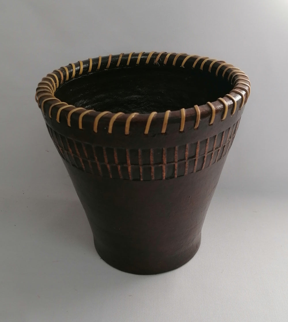 Vaza ceramica cu fir rattan H:22cm D:21.5cm
