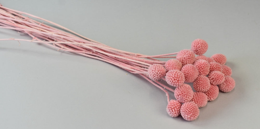 Această Craspedia înălbită în nuanțe delicate de roz deschis aduce un strop de eleganță și prospețime oricărui aranjament floral. Bucatele sunt grupate în legături de câte 20 de fire, oferindu-ți posibilitatea de a crea aranjamente spectaculoase și rafinate.