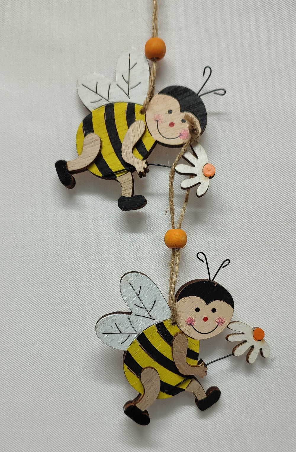 Aceste adorabile albinuțe din lemn sunt alegerea perfectă pentru a aduce o notă primăvăratică și rustică în decorul casei tale. Cu dimensiunile lor de 9x8cm, aceste două albinuțe aduc un farmec aparte oricărui aranjament.