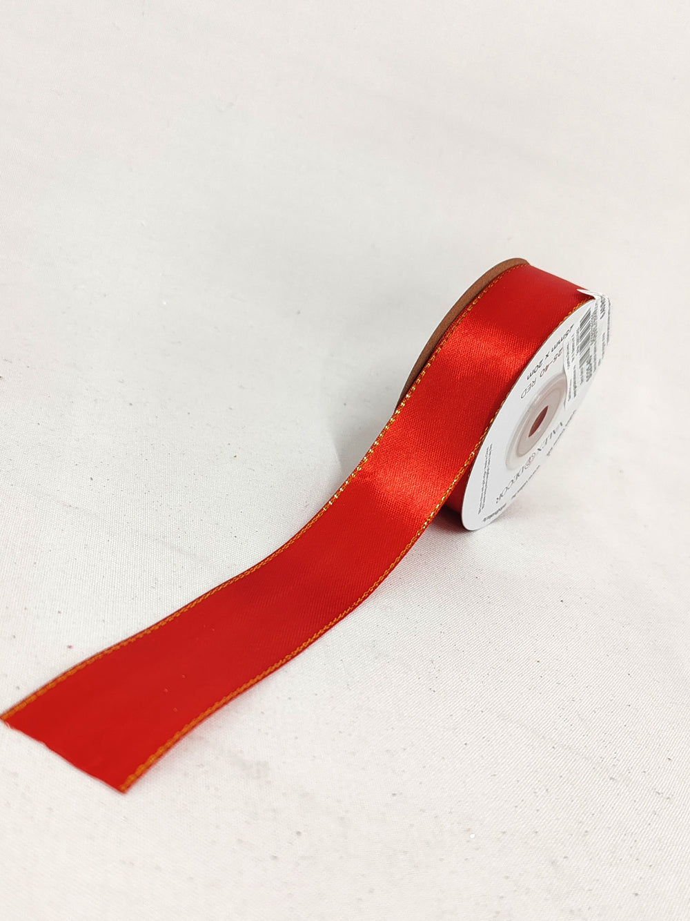 Banda decor saten cu margine aurii 25mmx20m rosu