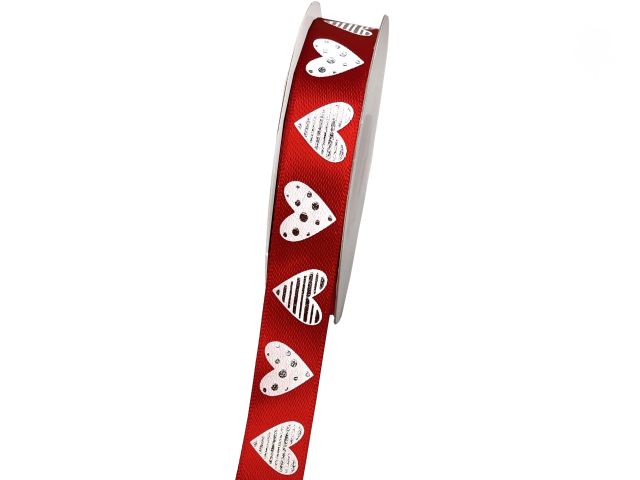 Banda decor textil cu inimi 16mmx10m rosu/alb/arg.