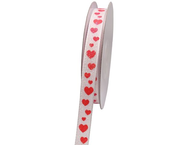 Banda decor textil cu inimi 9mmx10m alb/rosu